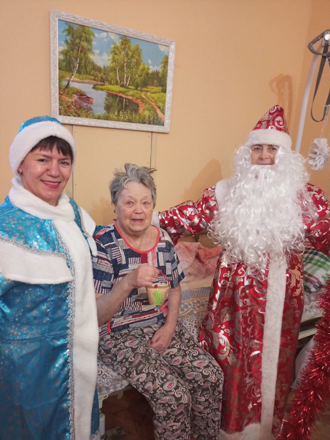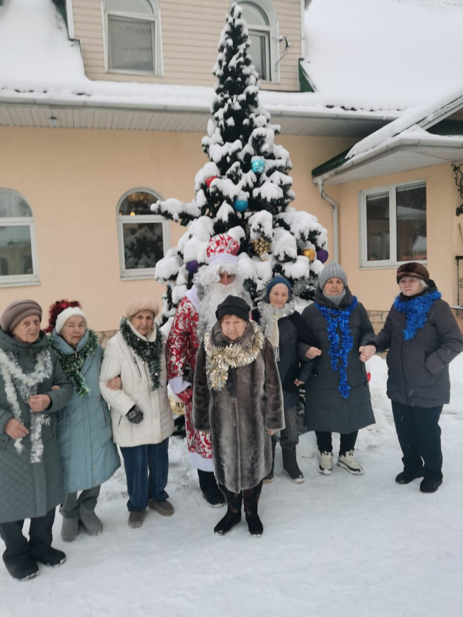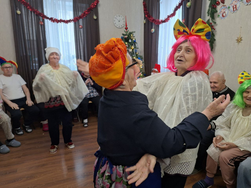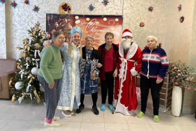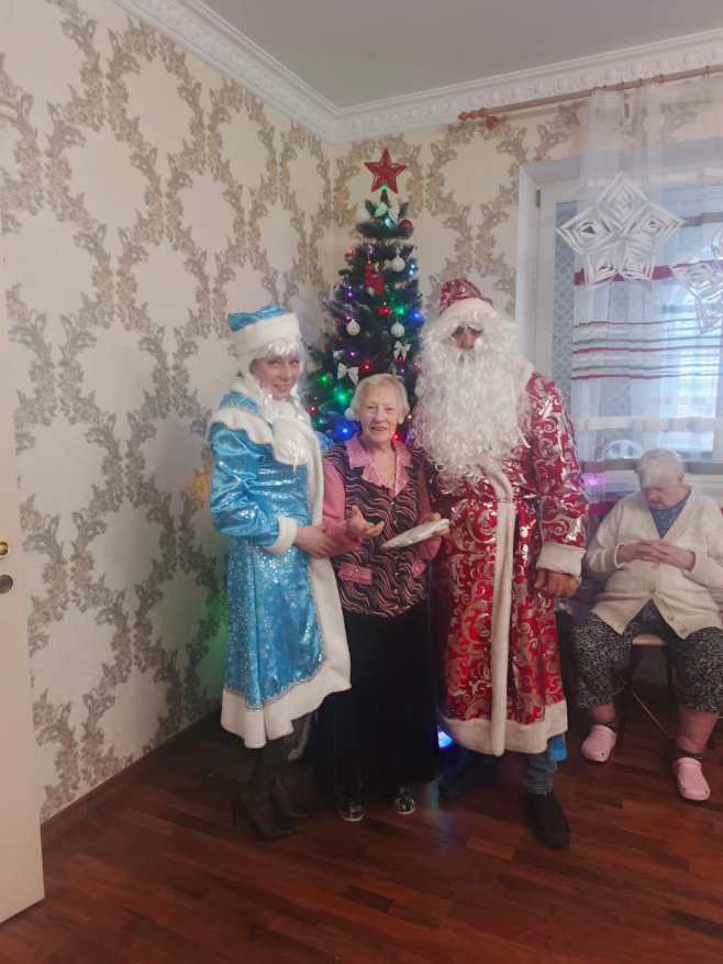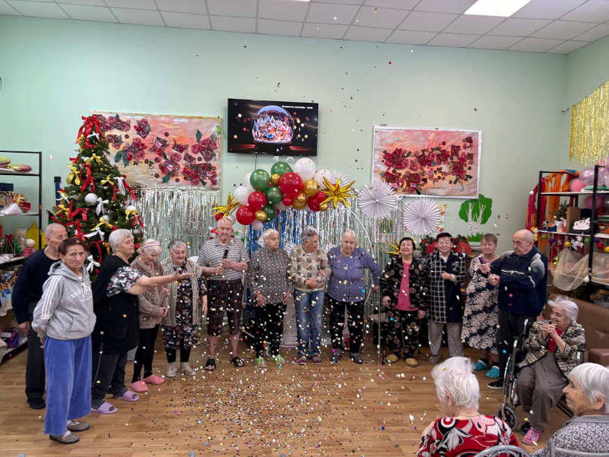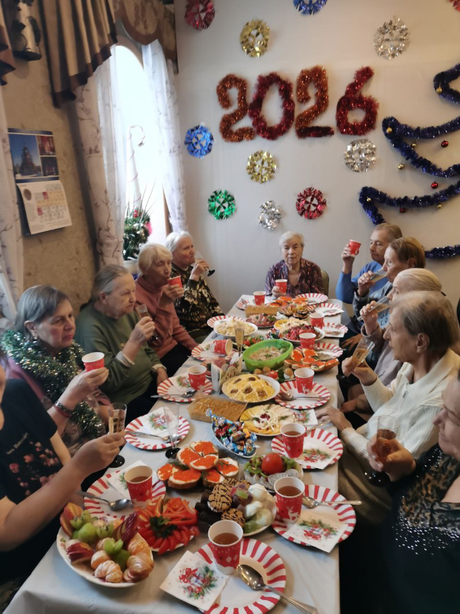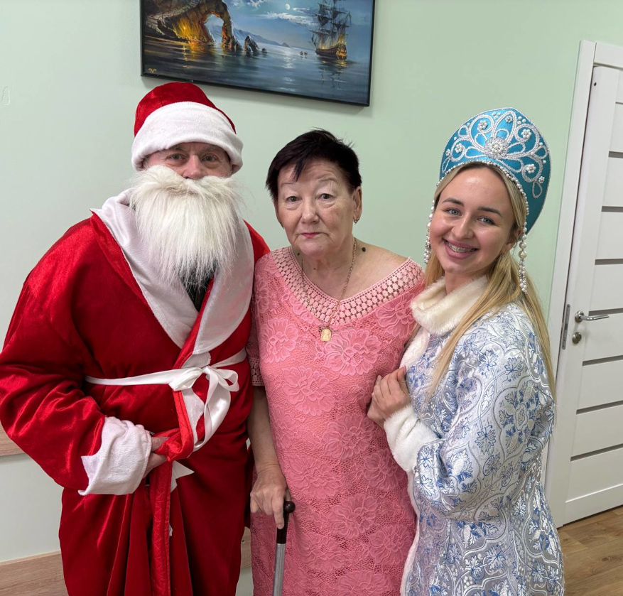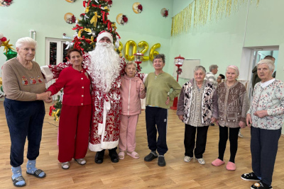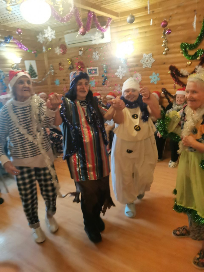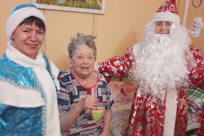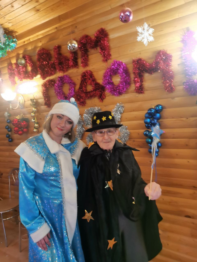 А еще в каждом пансионате развернулось широкое застолье с отличными угощениями! После поздравлений и вручения подарков все активные жильцы закружились в хороводах новогодней дискотеки! Наших маломобильных постояльцев Дед Мороз со Снегурочкой навестили в индивидуальном порядке. — Никто не остался без внимания и хорошего настроения!