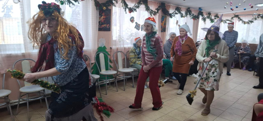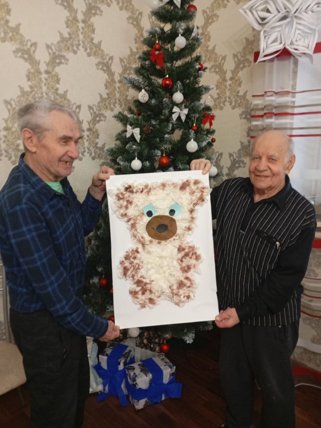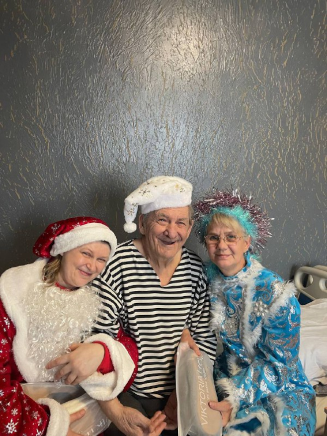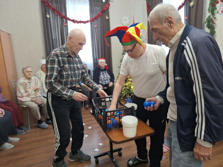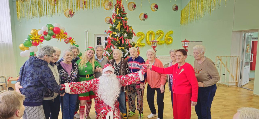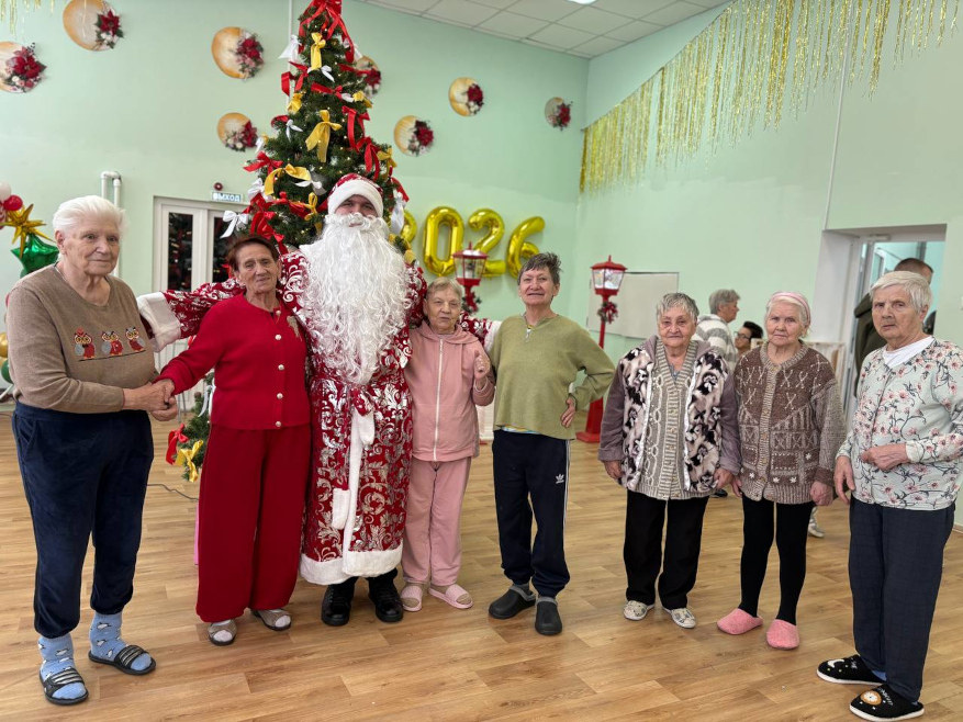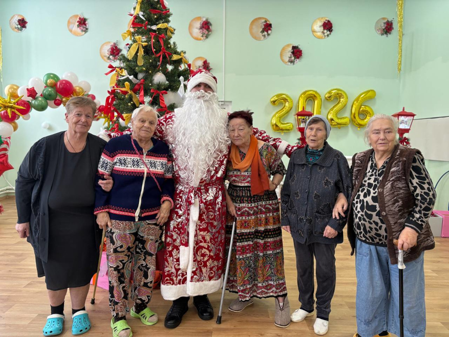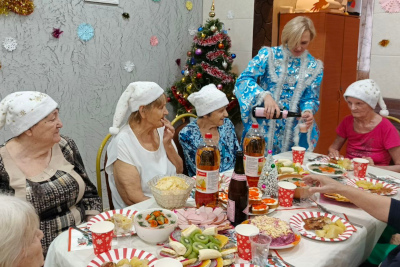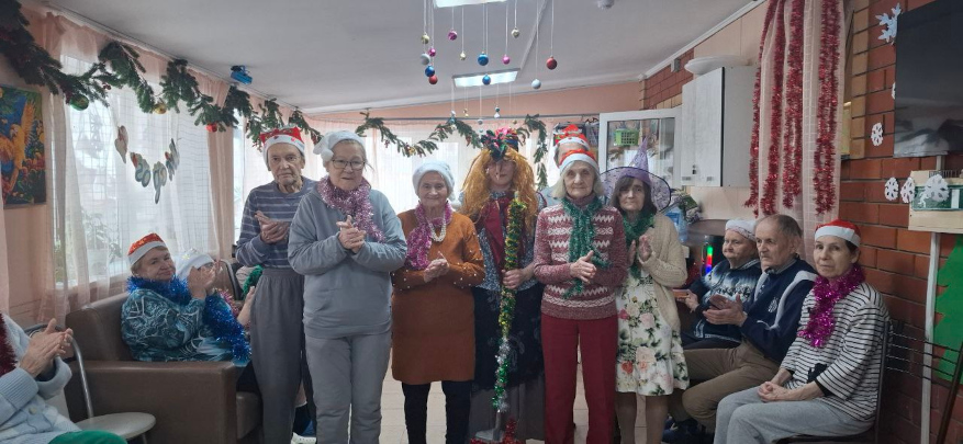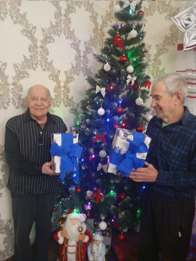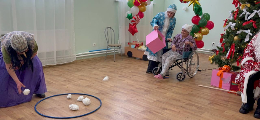 А еще в каждом пансионате развернулось широкое застолье с отличными угощениями! После поздравлений и вручения подарков все активные жильцы закружились в хороводах новогодней дискотеки! Наших маломобильных постояльцев Дед Мороз со Снегурочкой навестили в индивидуальном порядке. — Никто не остался без внимания и хорошего настроения!