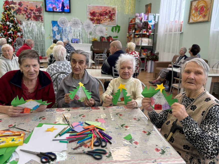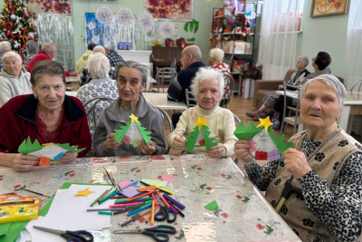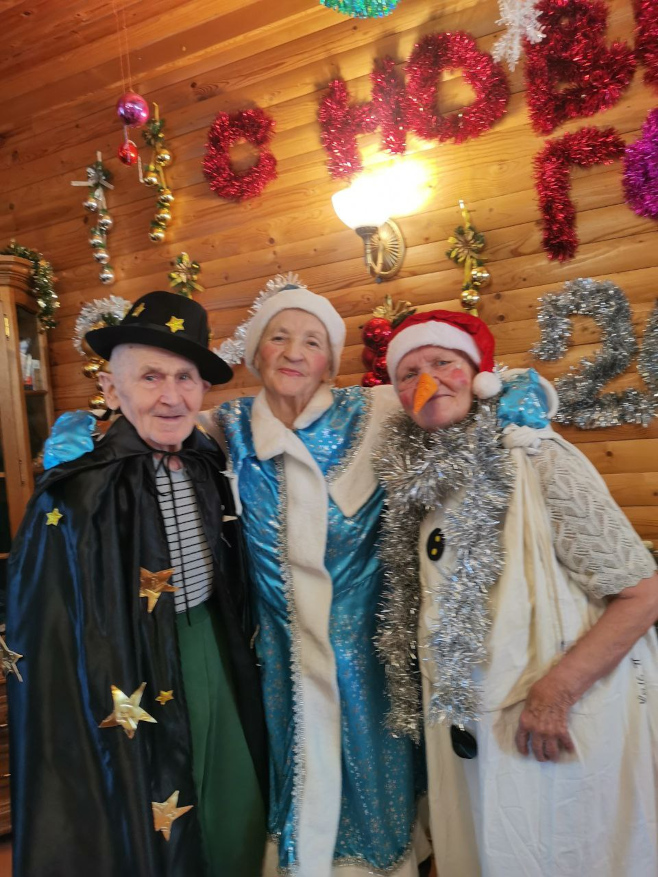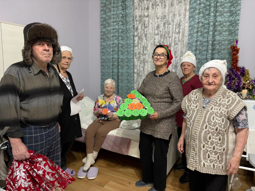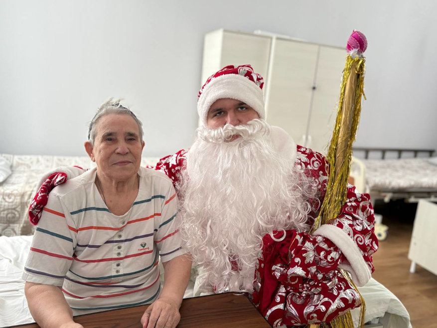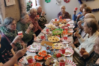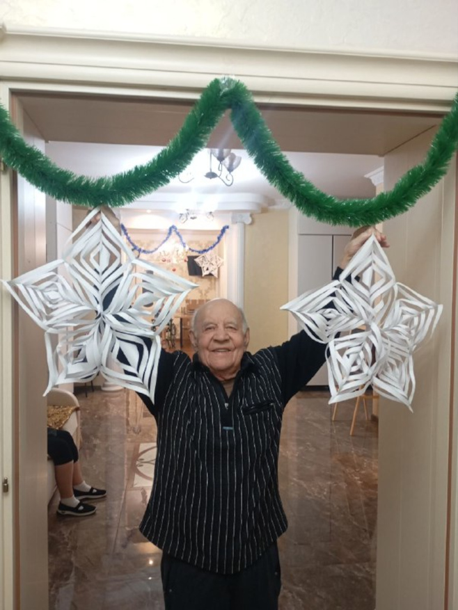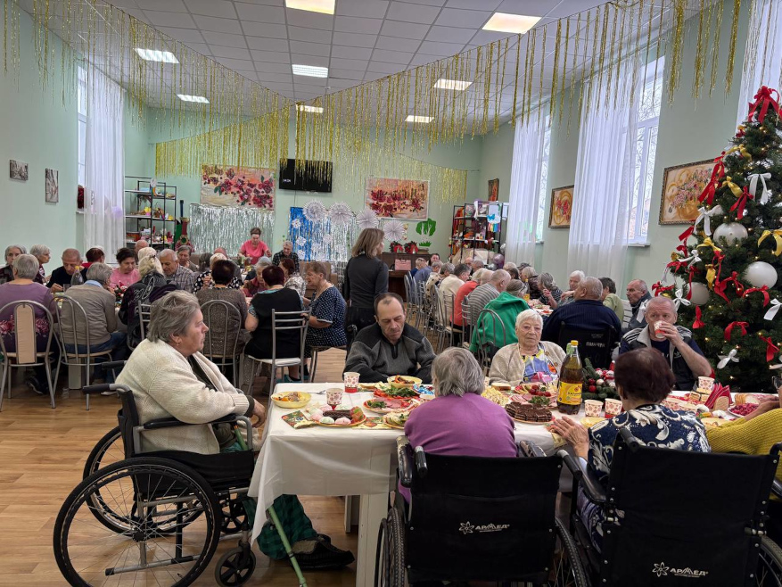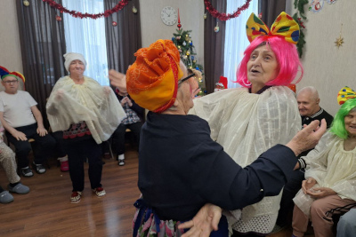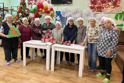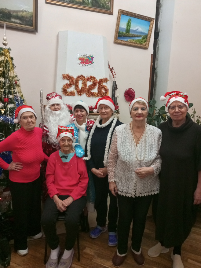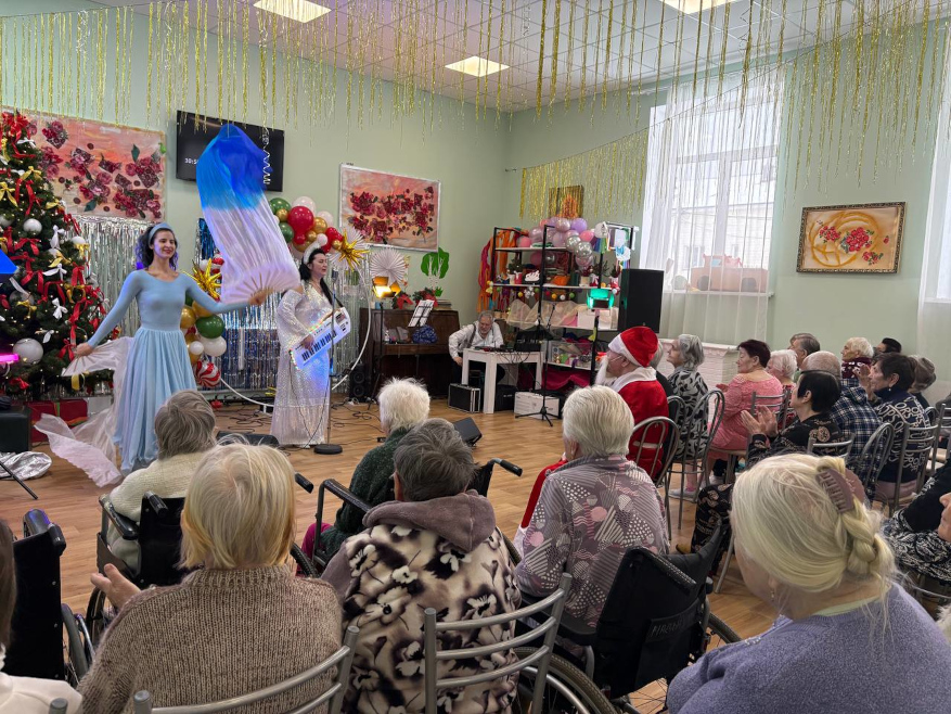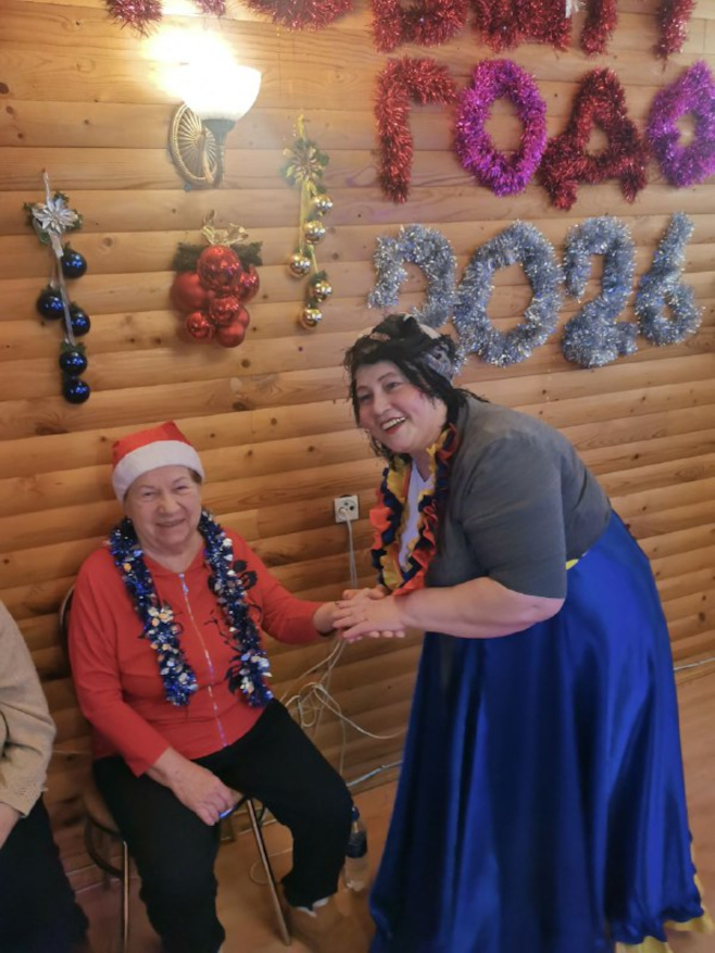 А еще в каждом пансионате развернулось широкое застолье с отличными угощениями! После поздравлений и вручения подарков все активные жильцы закружились в хороводах новогодней дискотеки! Наших маломобильных постояльцев Дед Мороз со Снегурочкой навестили в индивидуальном порядке. — Никто не остался без внимания и хорошего настроения!