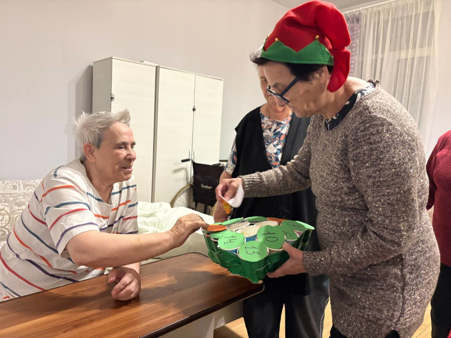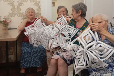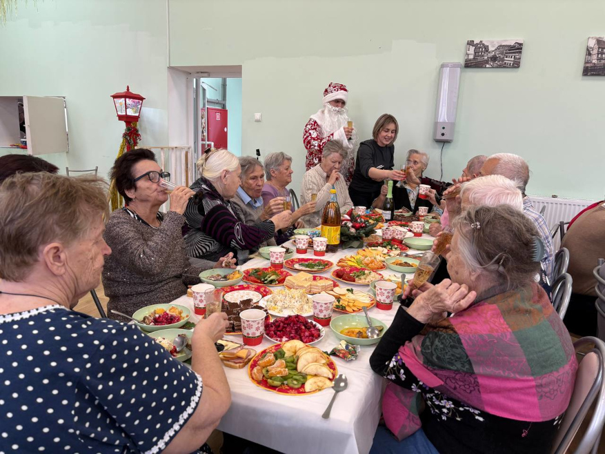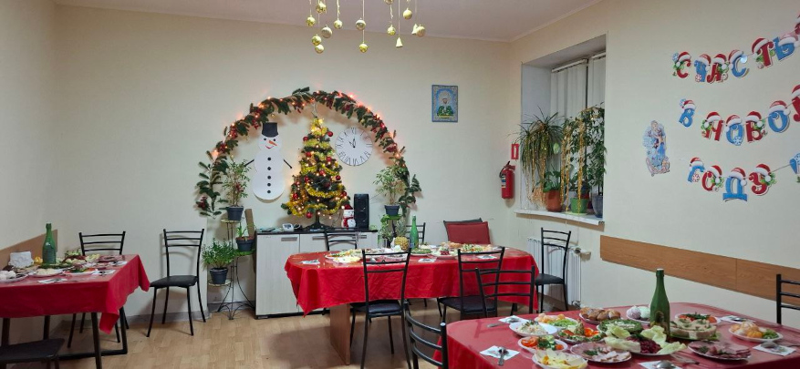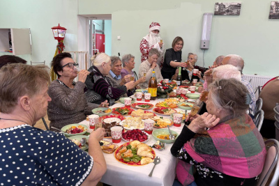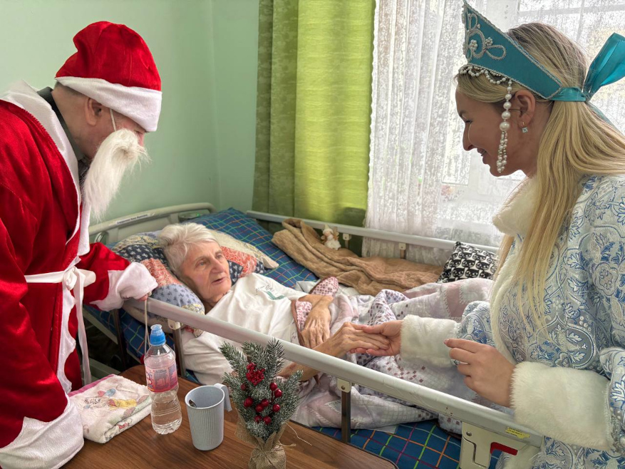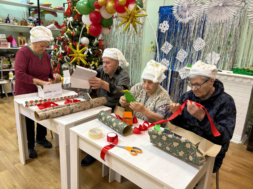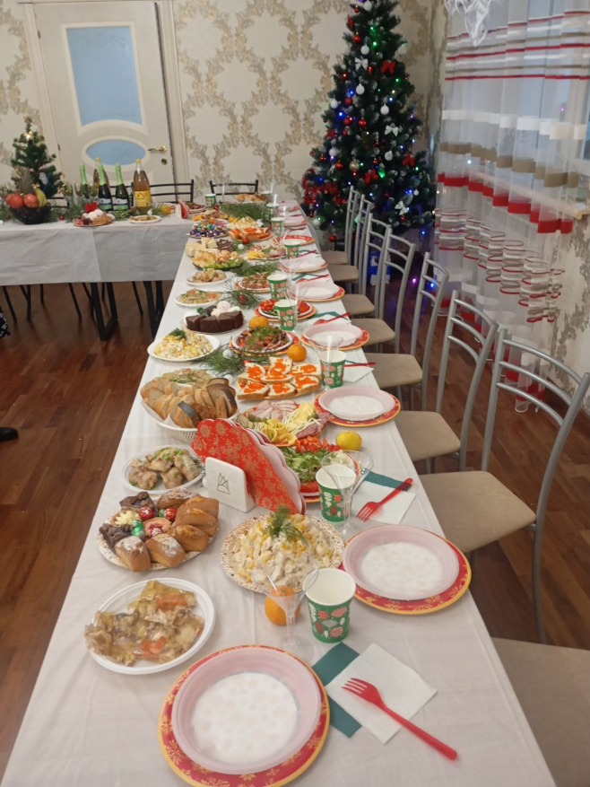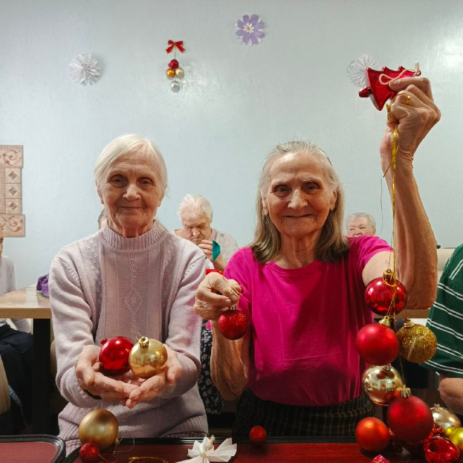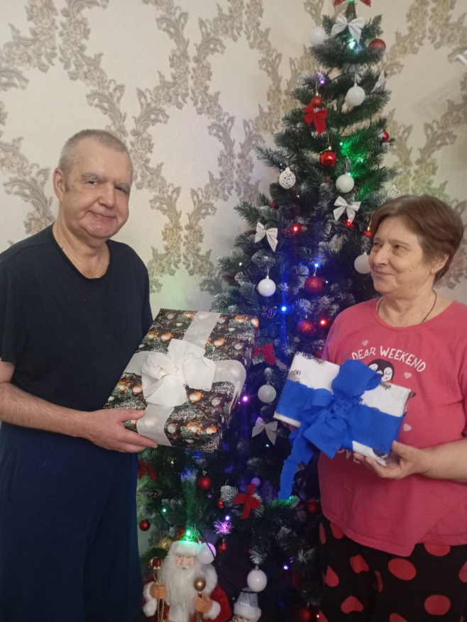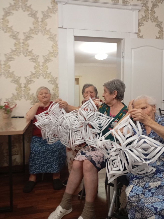 А еще в каждом пансионате развернулось широкое застолье с отличными угощениями! После поздравлений и вручения подарков все активные жильцы закружились в хороводах новогодней дискотеки! Наших маломобильных постояльцев Дед Мороз со Снегурочкой навестили в индивидуальном порядке. — Никто не остался без внимания и хорошего настроения!