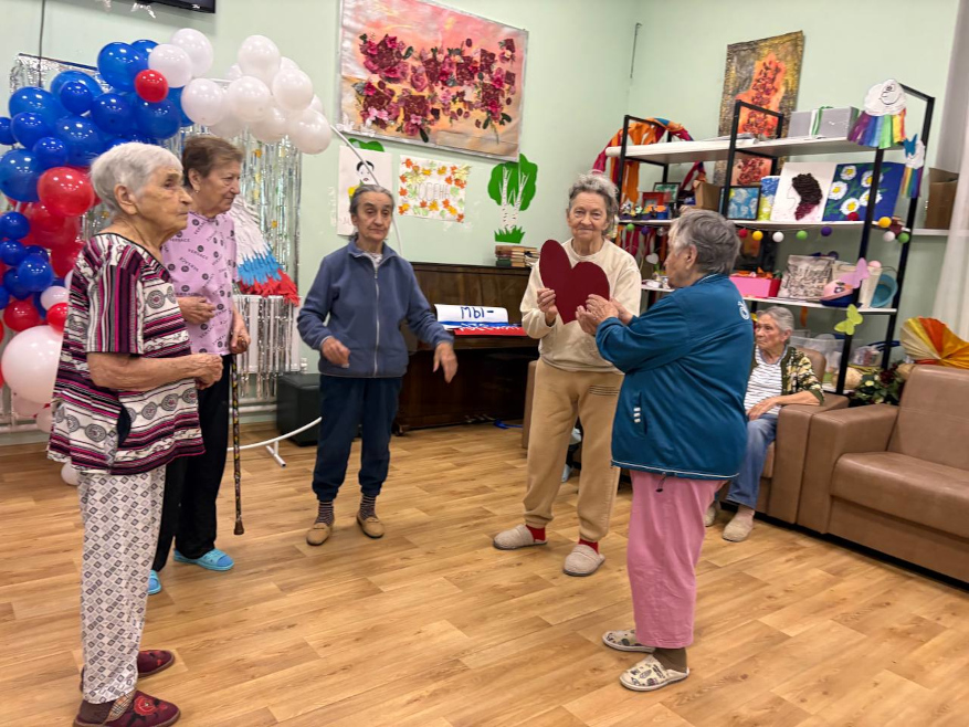 Особое внимание было уделено тем, кто по состоянию здоровья не может активно передвигаться: для лежачих пациентов организовали персональные поздравления и совместное пение, чтобы никто не остался в стороне от общего праздника.