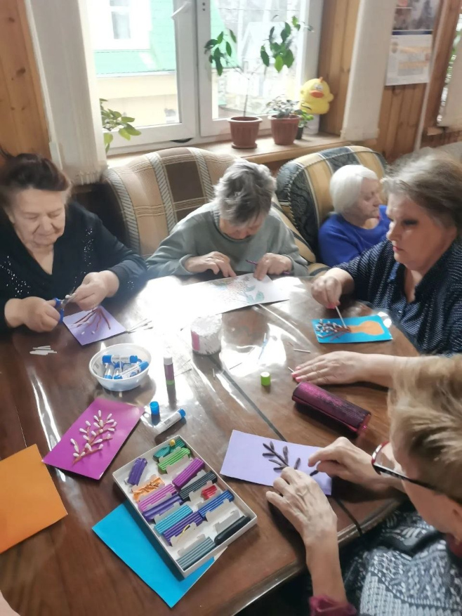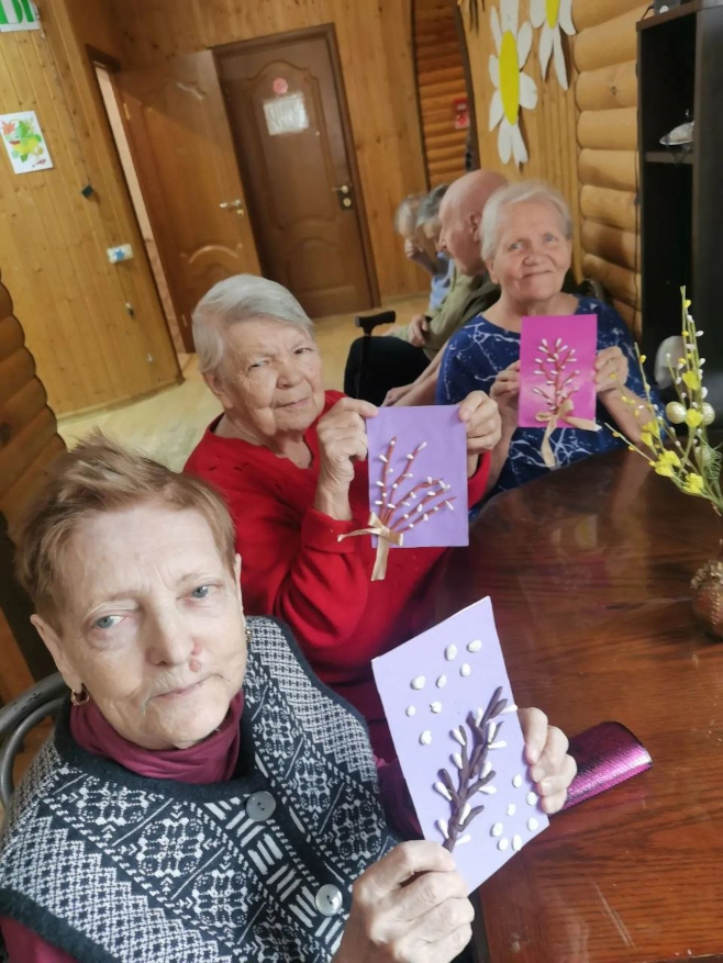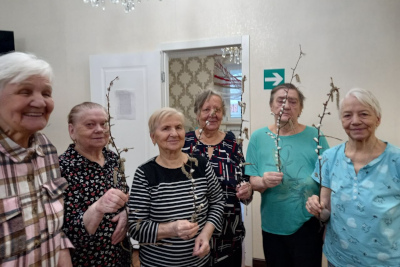 В Вербное воскресенье в нашей сети пансионатов для пожилых людей А-пансион прошли тёплые и душевные мероприятия. Жители сделали красивые объёмные поделки с вербой, а затем подарили их друг другу — это добавило празднику особой теплоты.