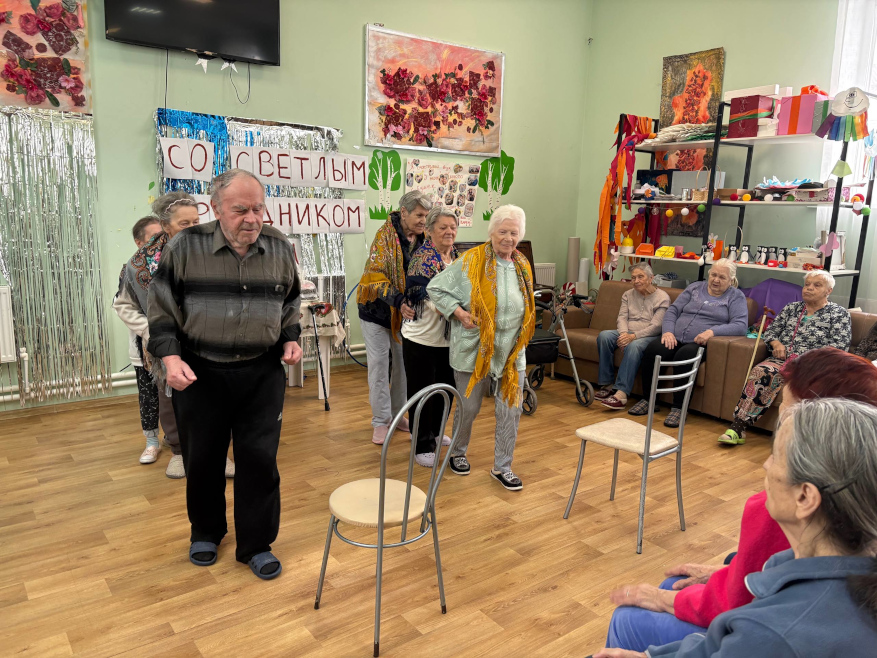 Ярким моментом стало торжественное мероприятие: гости участвовали в весёлых конкурсах, делились добрыми воспоминаниями и праздничным настроением. Особое внимание мы уделили маломобильным жильцам — их тоже не обошли вниманием, подарив частичку общего торжества.
