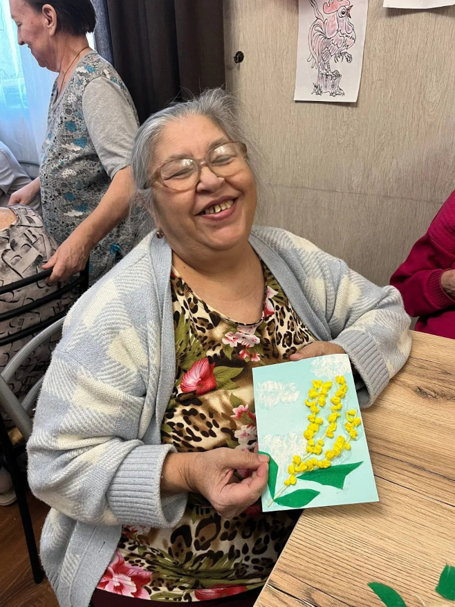 14 марта мы отмечали День мимозы и День добрых дел. Этот день получился не только красивым, но и познавательным. Мы вместе узнали интересные факты об этом солнечном цветке: откуда он появился, почему стал символом весны и как его используют в разных странах. Многие делились своими воспоминаниями, связанными с мимозой, — получилось очень трогательно. Особенной частью праздника стала творческая мастерская. Наши жители с радостью создавали яркие открытки своими руками — с аппликациями, рисунками и добрыми пожеланиями. Каждый вложил в них частичку тепла и заботы.