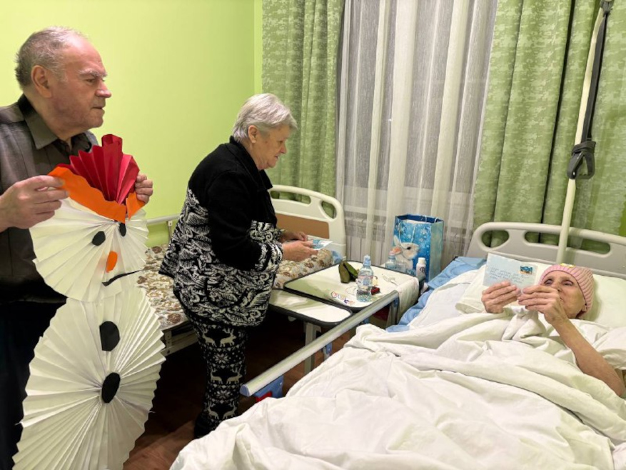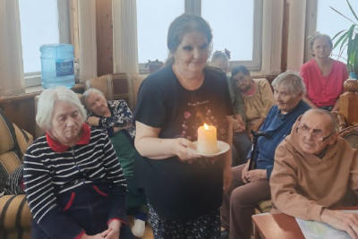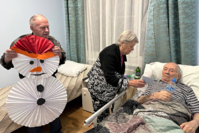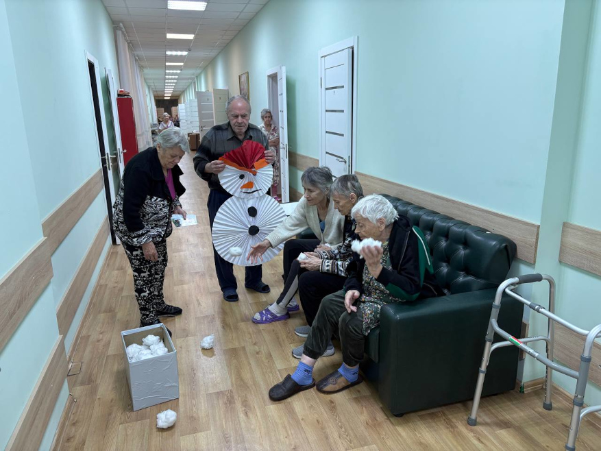 После активных развлечений мобильные постояльцы навестили тех, кто не может передвигаться самостоятельно, и тепло поздравили их.