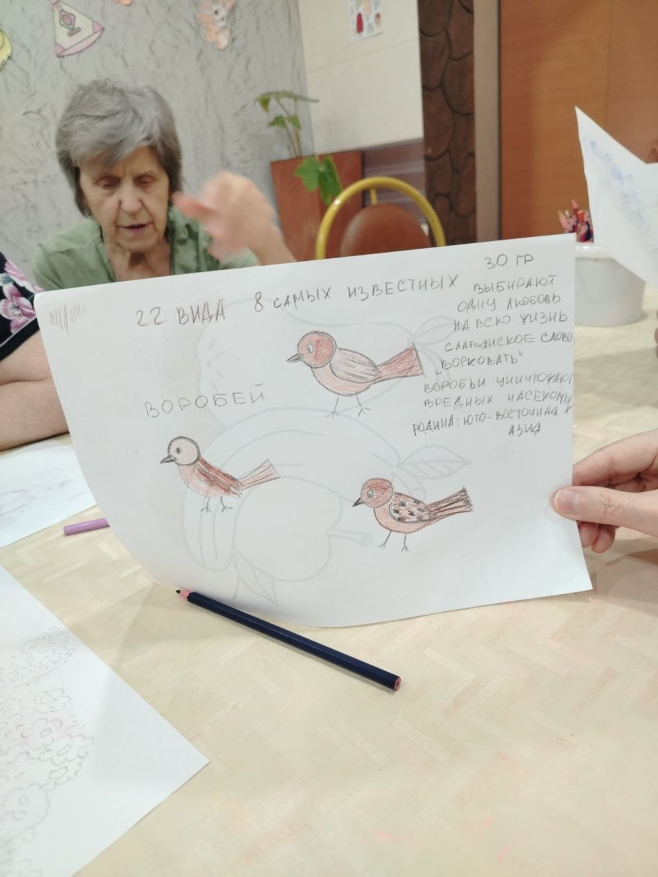 Затем мы погрузились в фольклор: вспоминали народные приметы и поговорки о воробьях. Кто‑то вспомнил знаменитую «Старого воробья на мякине не проведёшь», кто‑то поделился другими интересными выражениями. Было очень тепло и по‑домашнему уютно — словно вернулись в детство!
