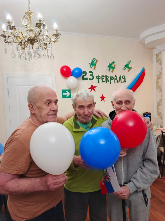 В наших пансионатах для пожилых 23 февраля прошёл тепло и душевно. С самого утра звучали поздравления с Днём защитника Отечества. Мы вспоминали годы службы, делились историями армейской молодости и благодарили наших дорогих мужчин за силу, мужество и жизненную мудрость.