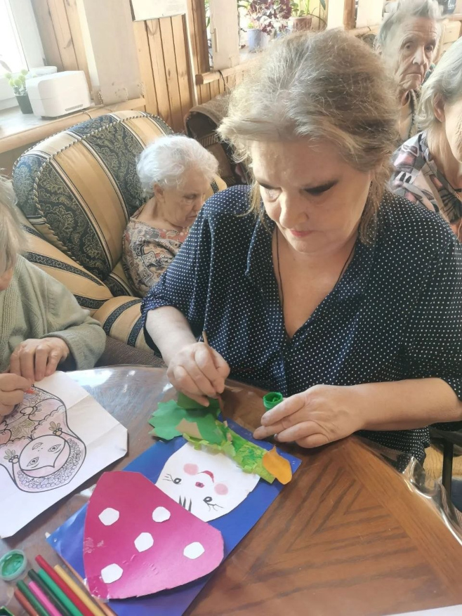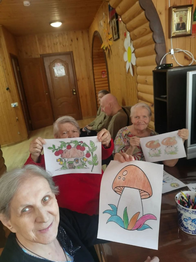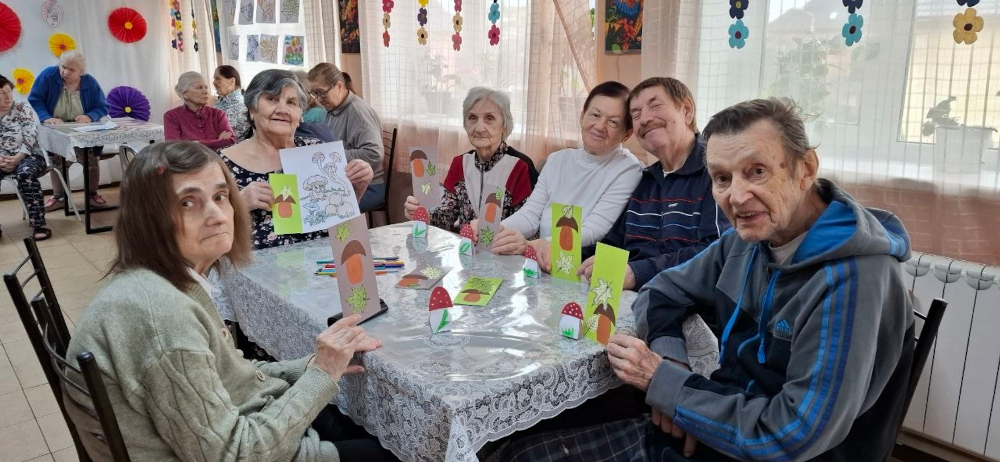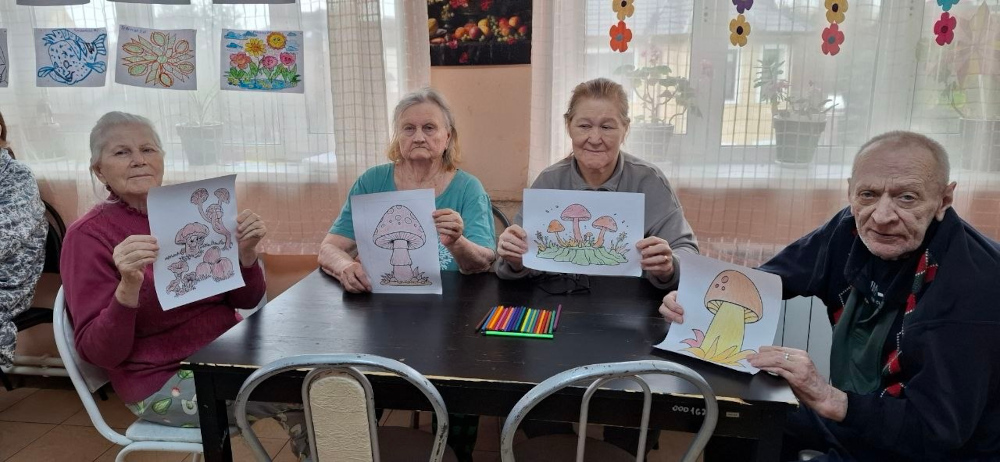 Начнем рассказ с празднования Национального дня грибов (16 апреля). Мы решили не просто вспомнить о важной роли грибов в природе, питании, медицине и культуре, а устроить настоящий познавательный праздник. Постояльцы участвовали в викторине: отвечали на вопросы о разных видах грибов, местах их сбора и самых любопытных фактах. А самый эрудированный знаток был удостоен почётной грамоты победителя — заслуженное признание за отличную память и знания! Не обошлось и без творчества: в рамках задания «Чудо‑гриб» наши бабушки и дедушки дали волю фантазии. На свет появились удивительные работы — от удивительно реалистичных подосиновиков до волшебных сказочных грибов, будто сошедших со страниц детских книг. Дополнили программу кроссворды и головоломки — отличное упражнение для ума и прекрасный способ поднять настроение.