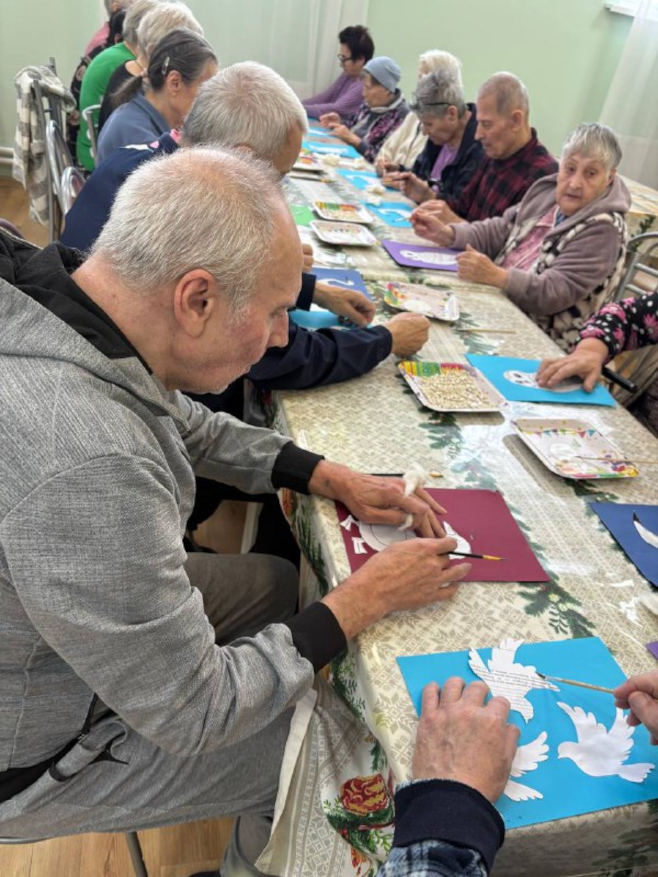 На мастер‑классах наши дедушки и бабушки с увлечением осваивали разные техники и материалы: лепили из пластилина, творили в технике оригами, создавали аппликации и объёмные композиции, работали с бумагой и ватными шариками, раскрашивали шаблоны, использовали природный материал.