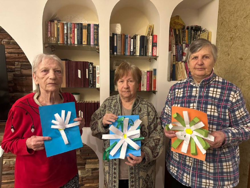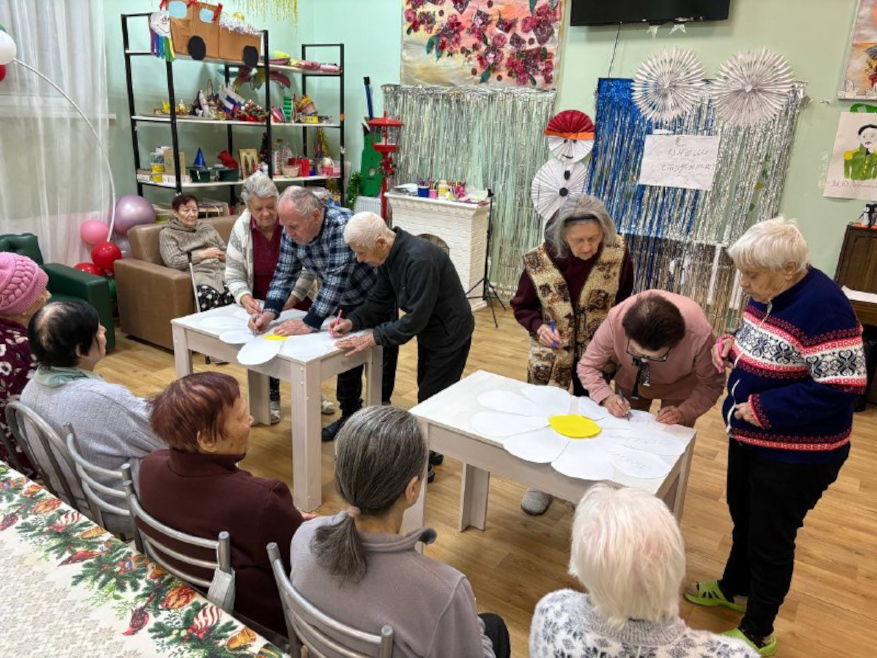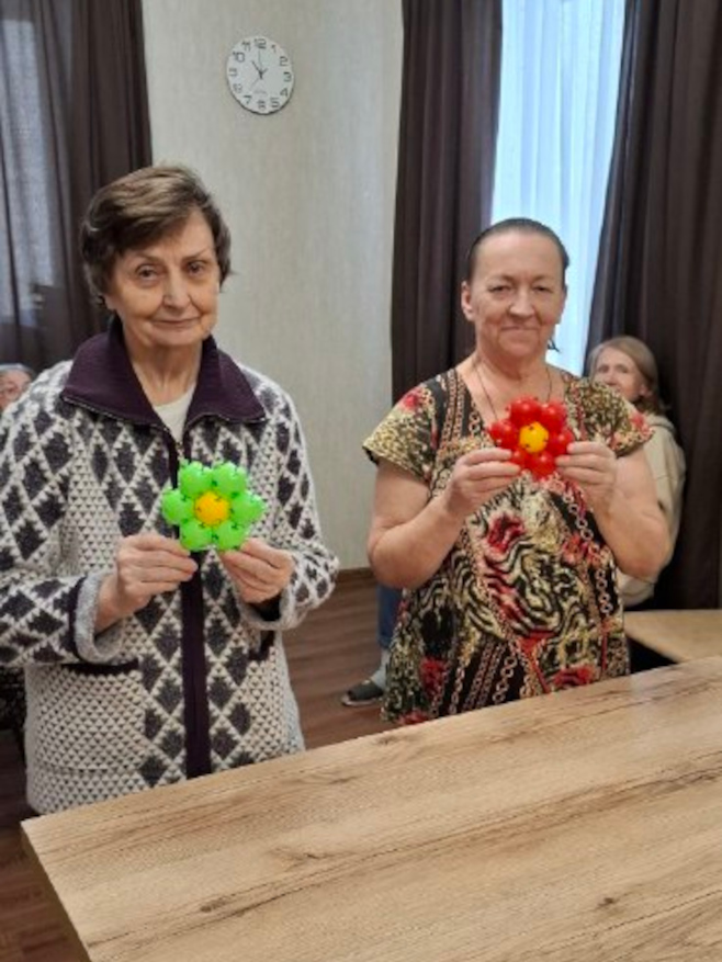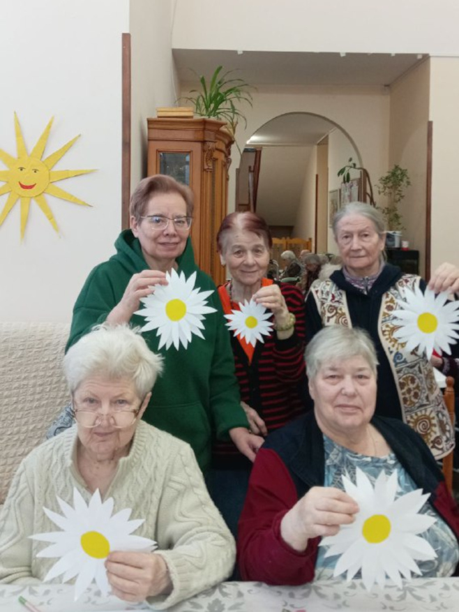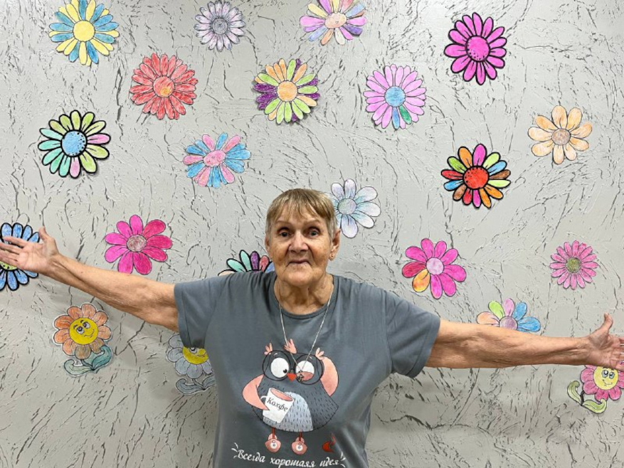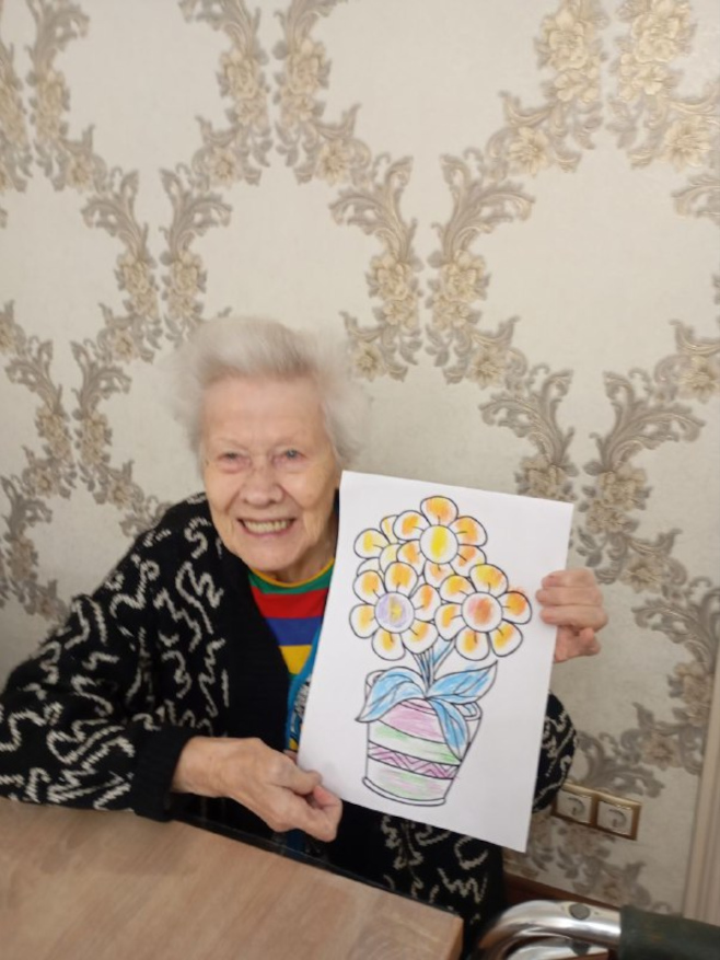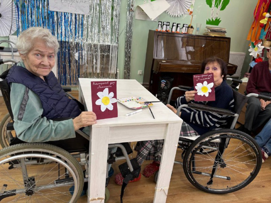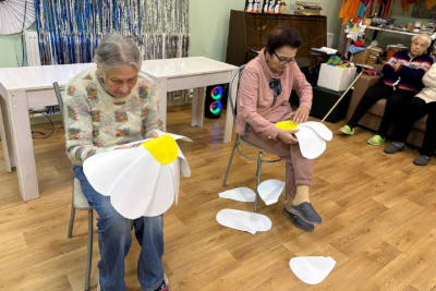 Вместе с постояльцами мы отгадывали загадки, связанные с природой и цветами, делали поделки, рисовали и раскрашивали ромашки, клеили яркие аппликации. Прошла и уютная фотосессия — с улыбками, цветами и отличным настроением.